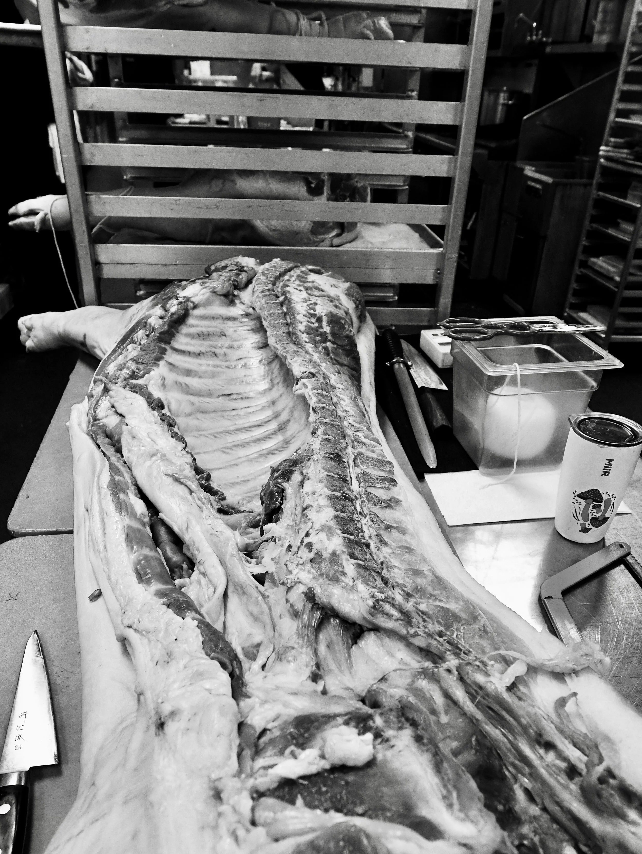 PT Ranch pig head galantine, braised, coated with fat and hanged to age